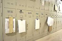 そのロッカーの扉、あるいはロッカーの中を使って各学生がポートフォリオ(作品ファイル)を展示しています。